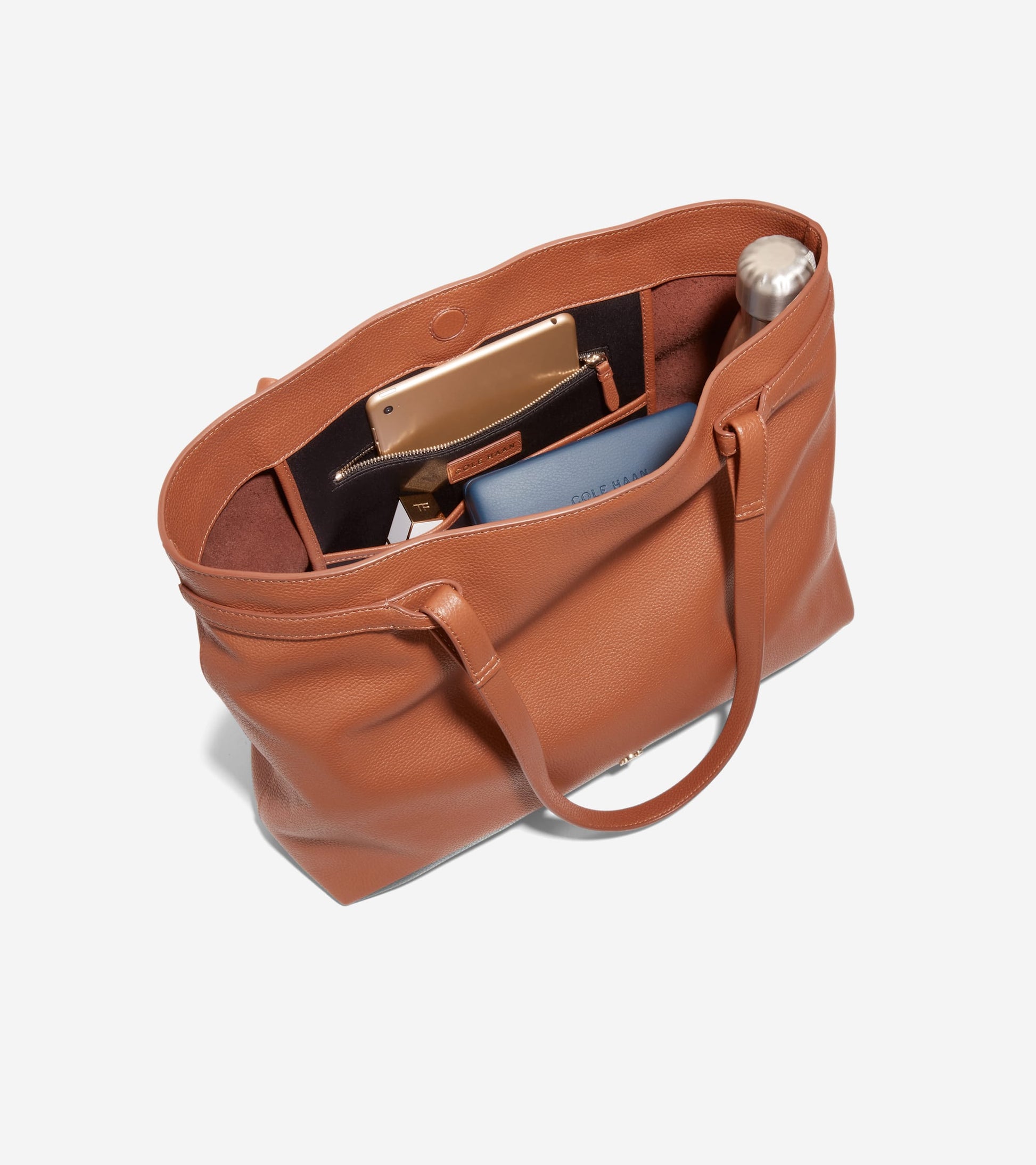 - جلد باللون التان البريطاني؛ إغلاق بزر كبس مغناطيسي