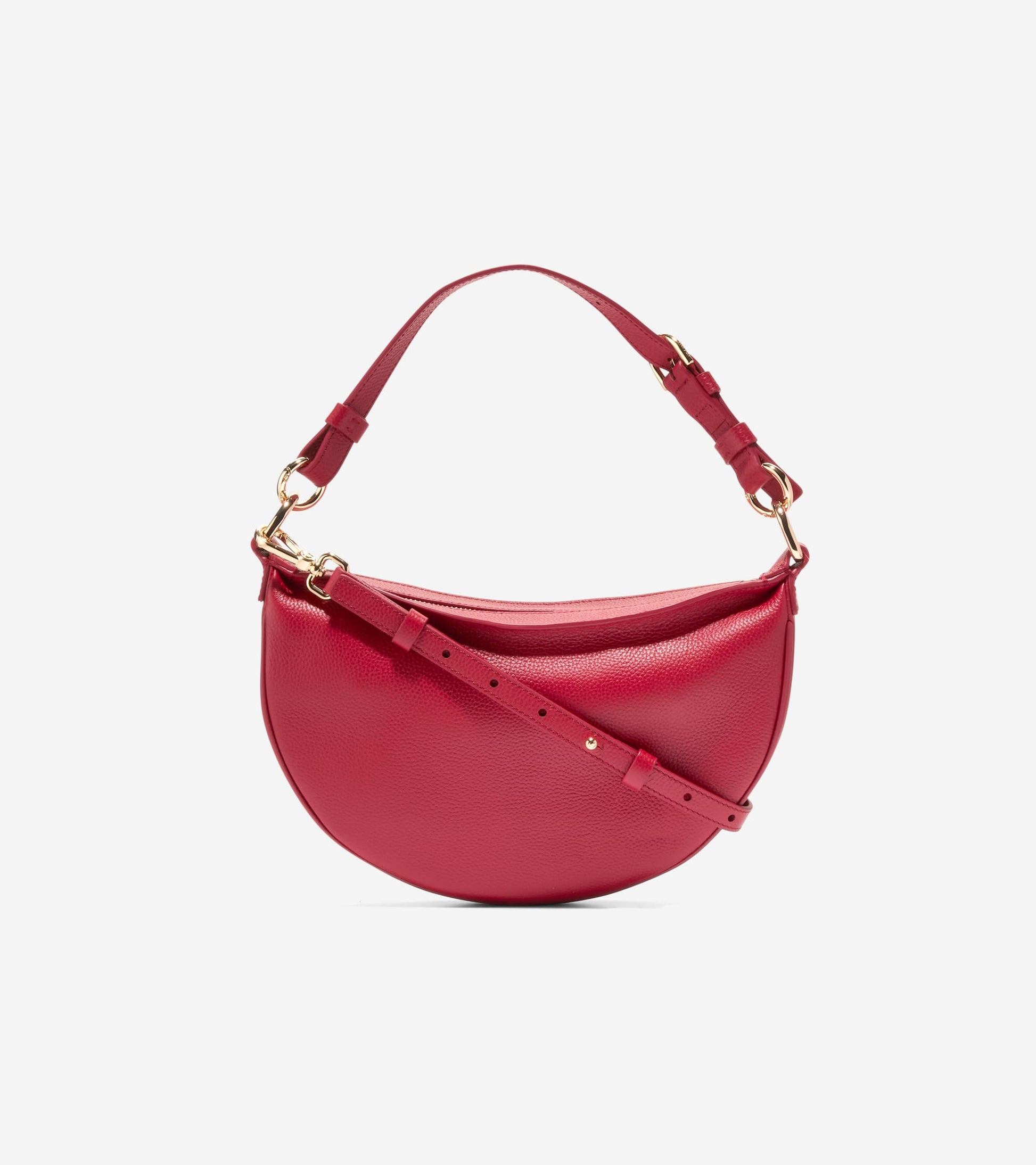- Leather in Rio Red; top zip closure