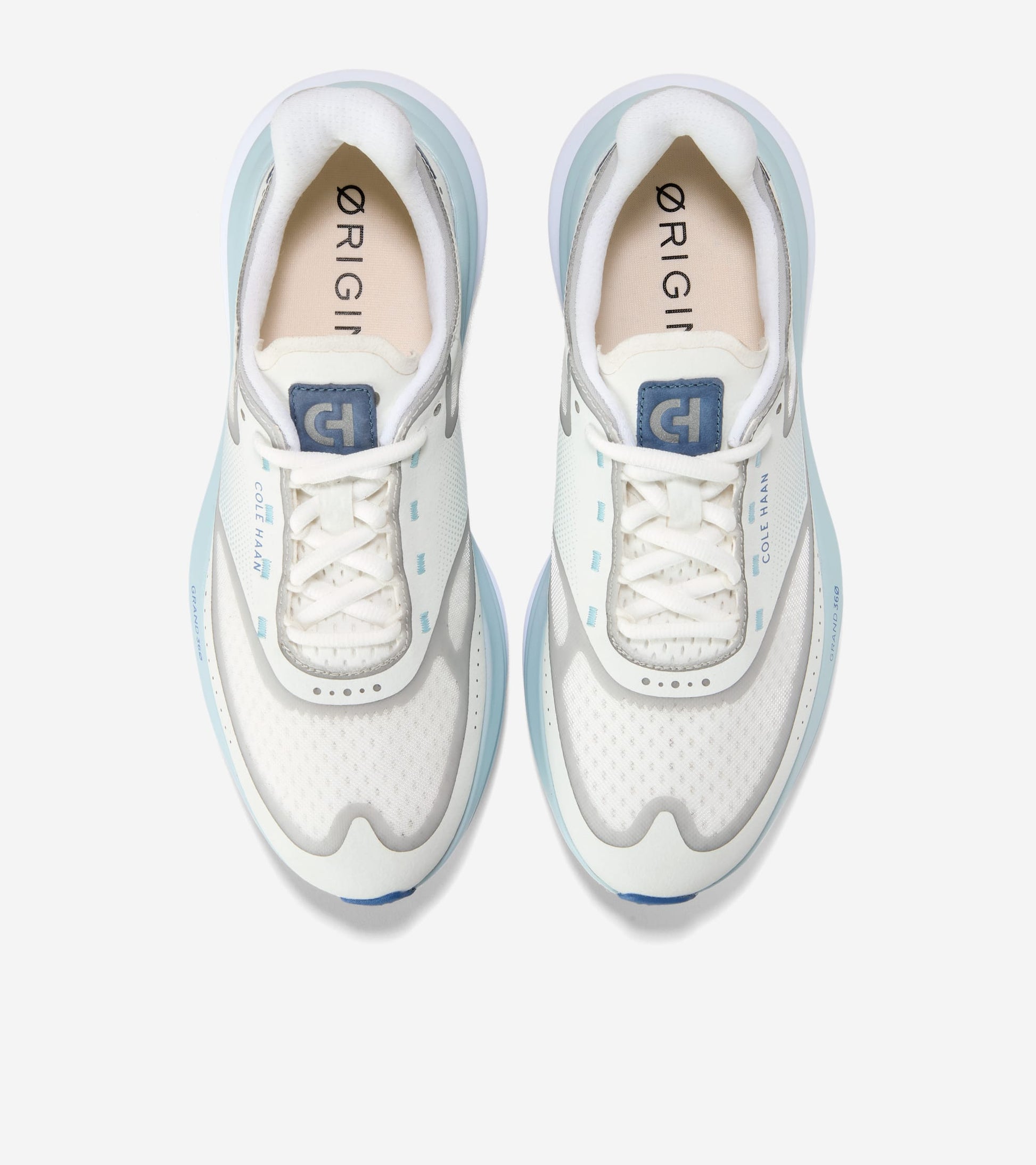 - Polyester upper in White, Microchip, and Skyway; five-loop lacing...