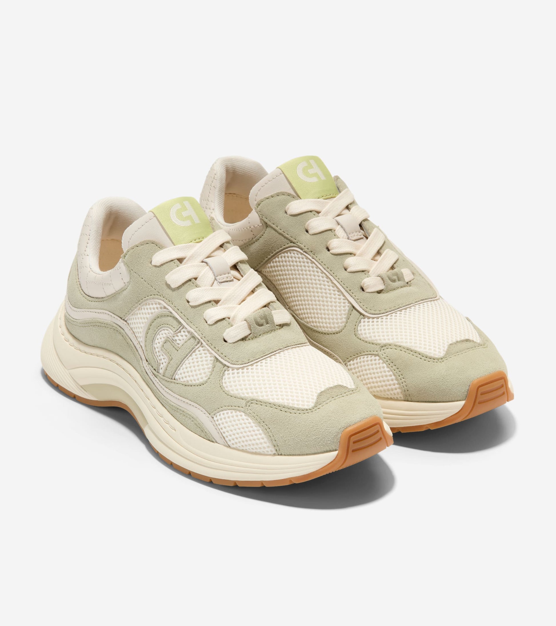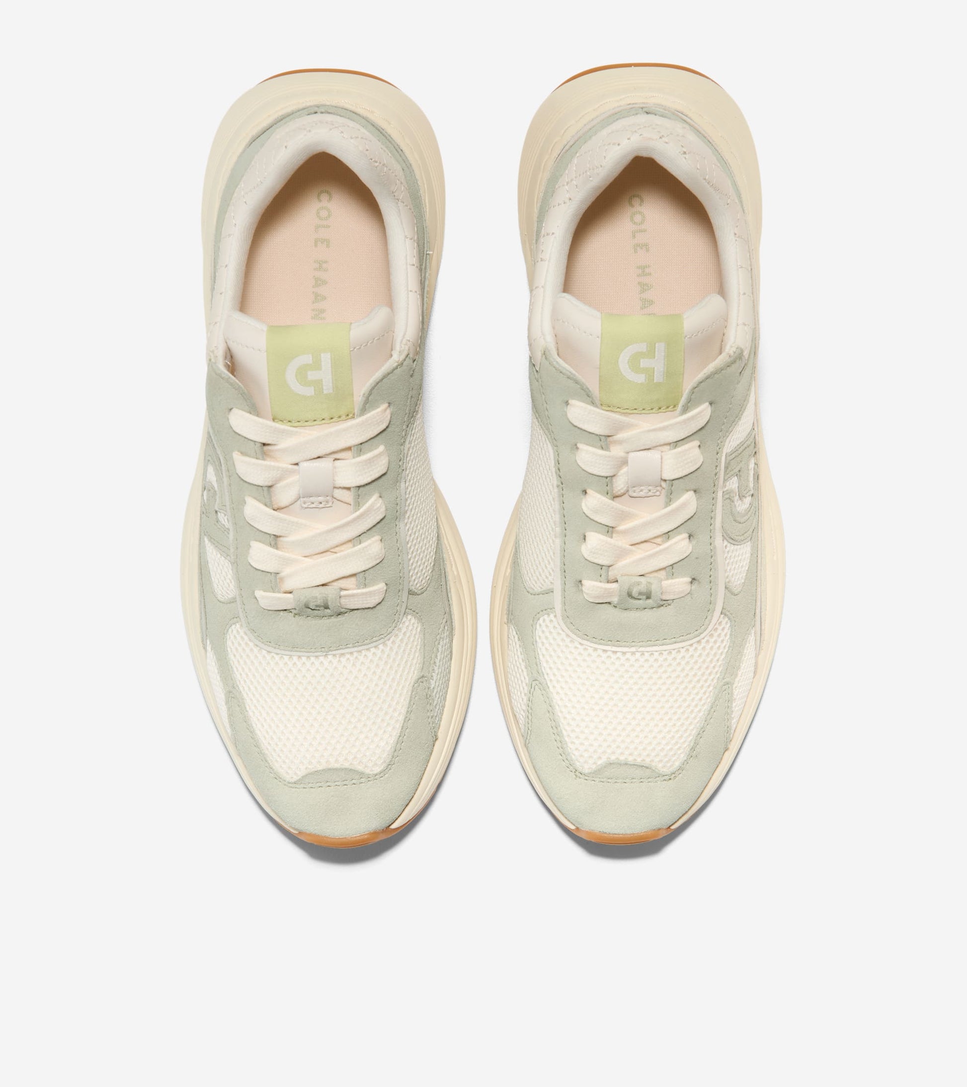 - Leather and suede upper in Ivory and Lint; six-eyelet...
