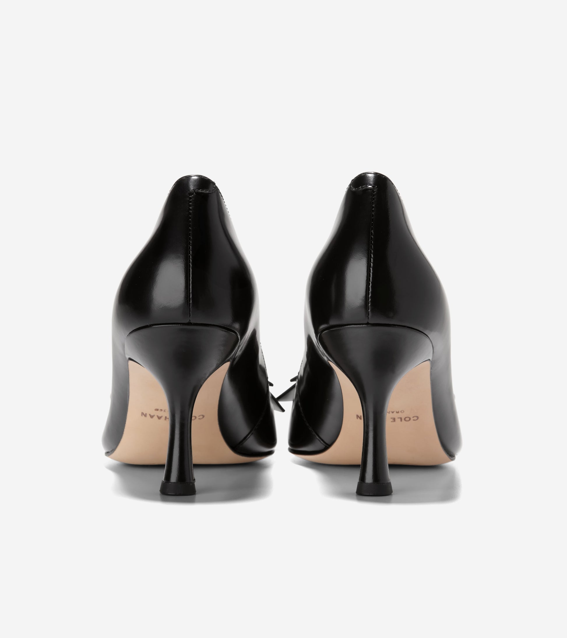 - Box leather upper in Black; decorative bow with gold...